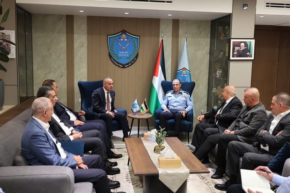 رئيس غرفة تجارة وصناعة وزراعة محافظة قلقيلية طارق شاور بمشاركة وفد من اتحاد الغرف التجارية الصناعية الزراعية الفلسطينية برئاسة رئيس الاتحاد عبده ادريس في زيارة لمدير عام الشرطة اللواء علام السقا، اليوم الاثنين، و بمشاركة عدد من رؤساء الغرف التجارية من المحافظات.