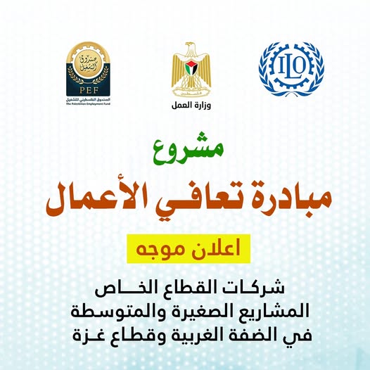 تدعوكم غرفة تجارة وصناعة وزراعة محافظة قلقيلية إلى التقدّم بطلب للمشاركة في مبادرة تعافي الأعمال (Business Recovery Initiative)، والتي تندرج ضمن خطة الاستجابة الطارئة لمنظمة العمل الدولية (ILO)،والمنفَّذة من خلال صندوق التشغيل الفلسطيني.